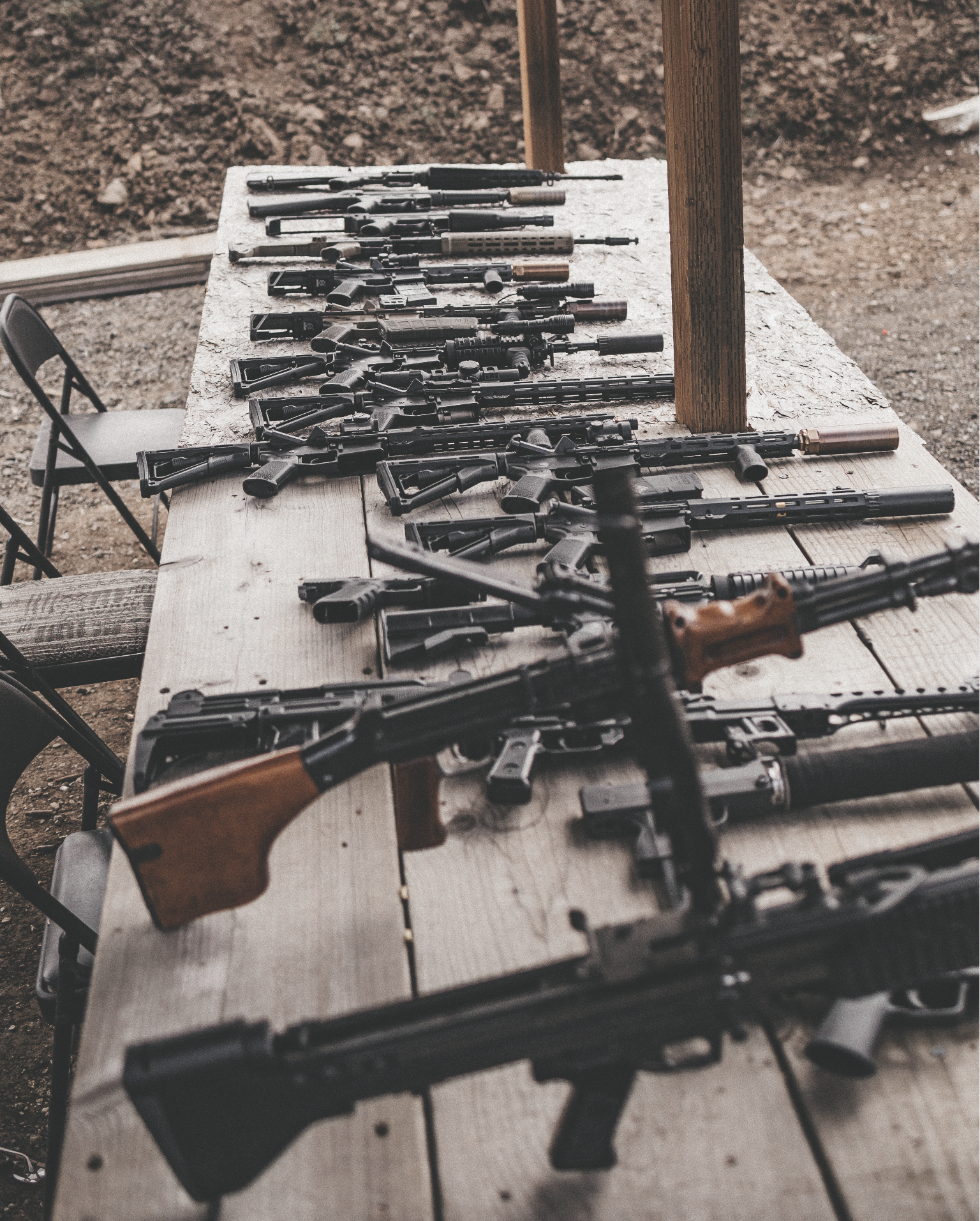We took a nice drive into the countryside from Spokane and arrived at a private range. As we were getting ready for a day of shooting, the Axis team started unloading the weapons we would be shooting and lining them up on the bench. An AK, a few AR’s but further, an M60 – also suppressed. Beyond, an RPD – suppressed. A Mac-10 and Mac-11 – suppressed.